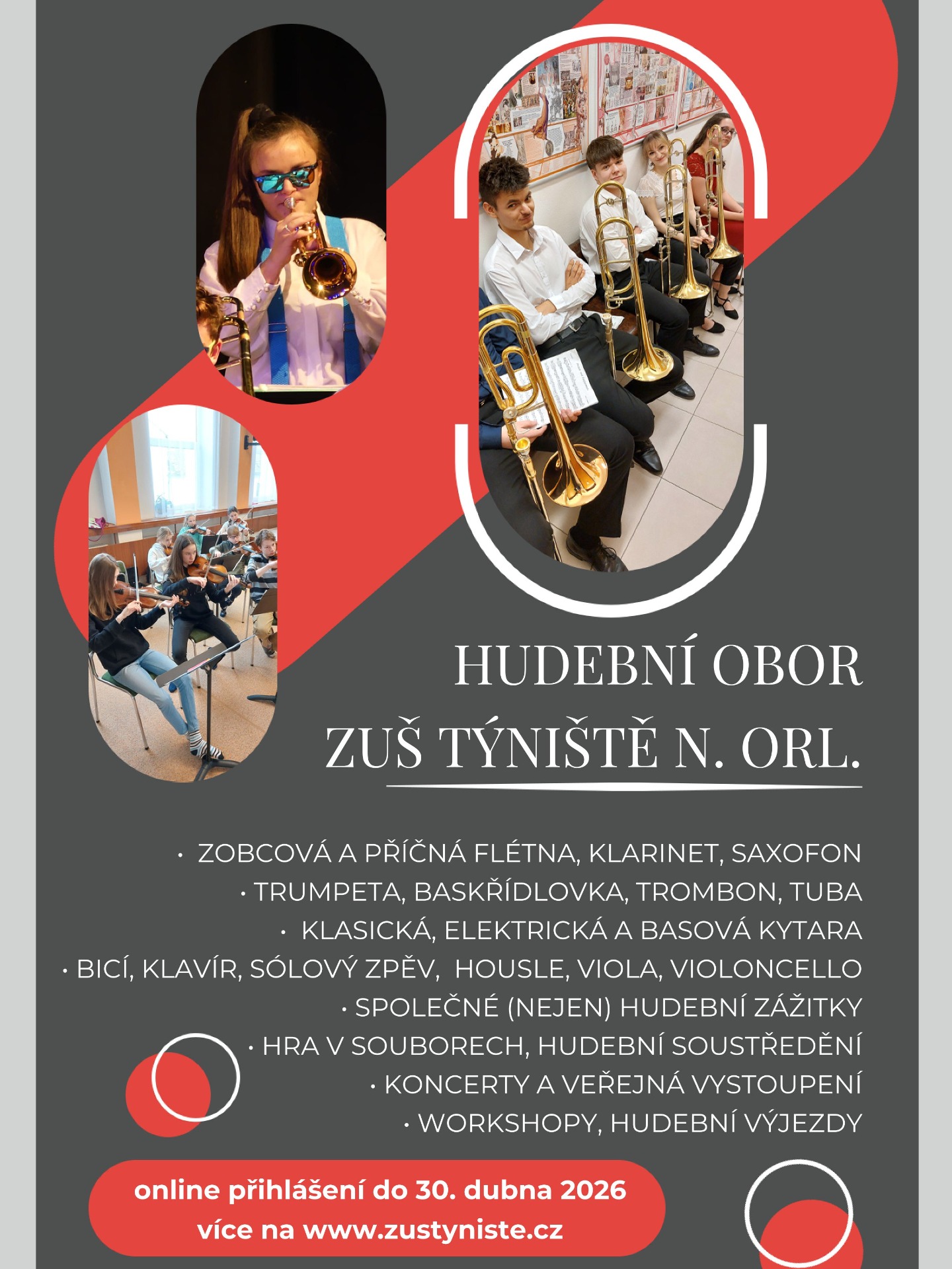 do 30. 4. 2026 přijímáme přihlášky, následně budeme zvát k přijímacím a talentovým zkouškám, které budou probíhat květen-červen